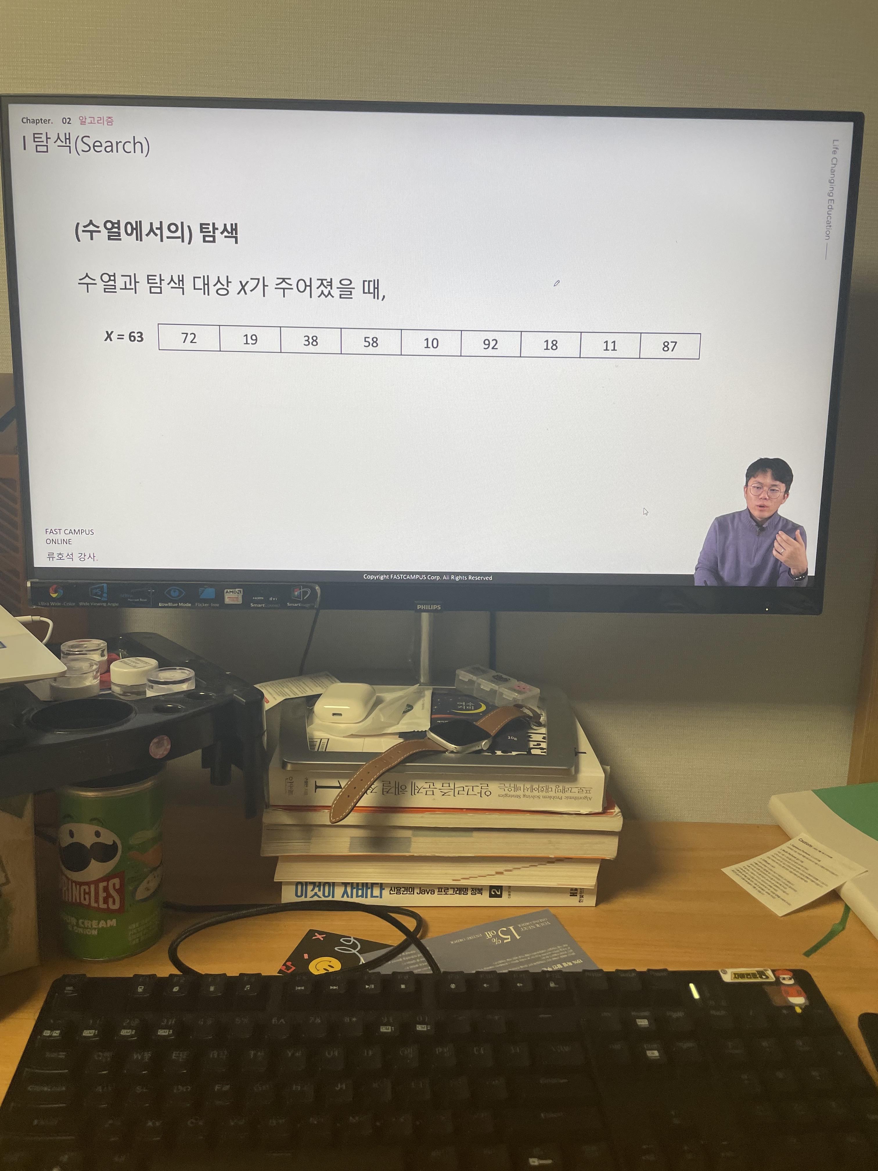 - 정렬이 보장되는 배열에서 기준 x를 가지고 범위를 이분하면서 탐색하는 방법