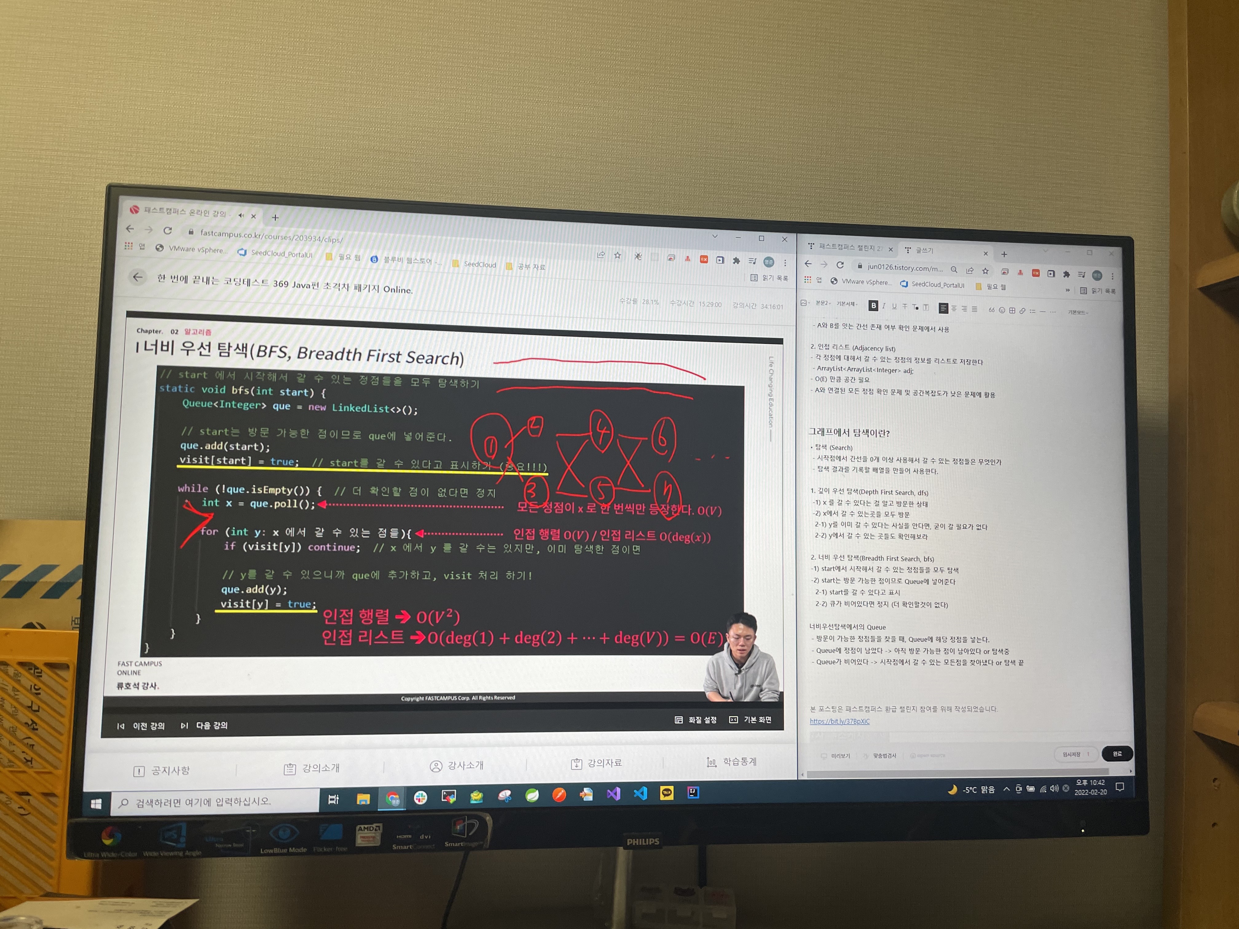 - 방문이 가능한 정점들을 찾을 때, Queue에 해당 정점을 넣는다.