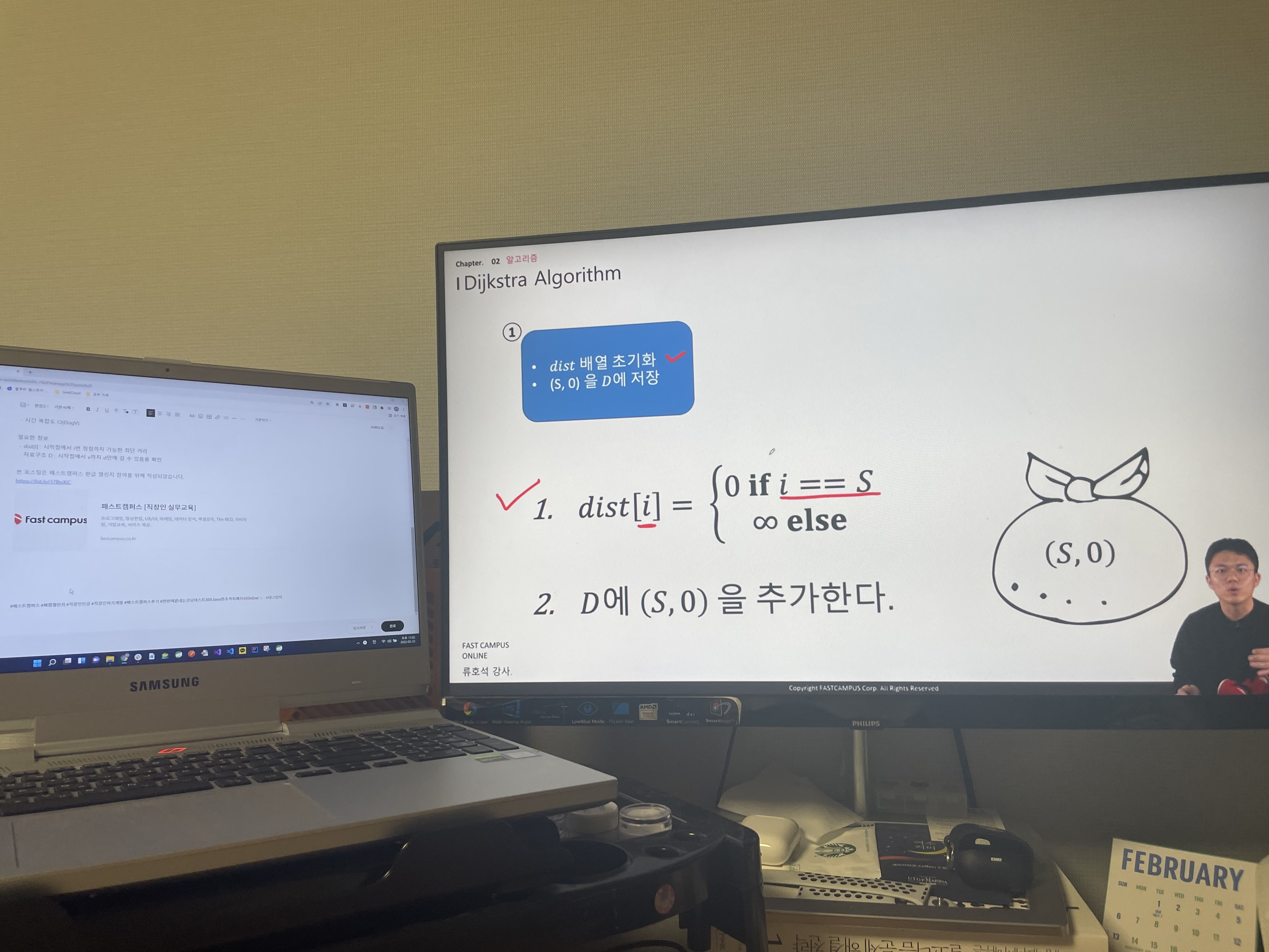 1. dist 배열 초기화, dist[i] = o if i == S , else