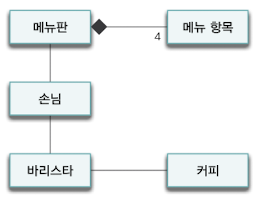 - 바리스타 객체를 알아야하며, 바리스타 객체와 손님 객체 사이에 관계가 존재