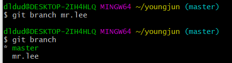 - git branch 명령어 입력 시 해당 git의 branch 목록을 확인할 수 있다.