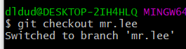 - git checkout -b "브랜치명" : 브랜치 생성과 동시에 해당 브런치로 이동