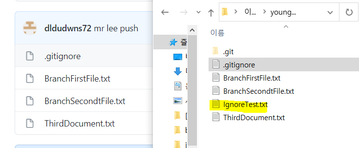 - .gitignore파일에 git에 올리지 않을 파일을 설정 해준 후 git status 확인 시 설정한 해당 파일은 git stage에 올라가지 않음을 확인할 수 있다.