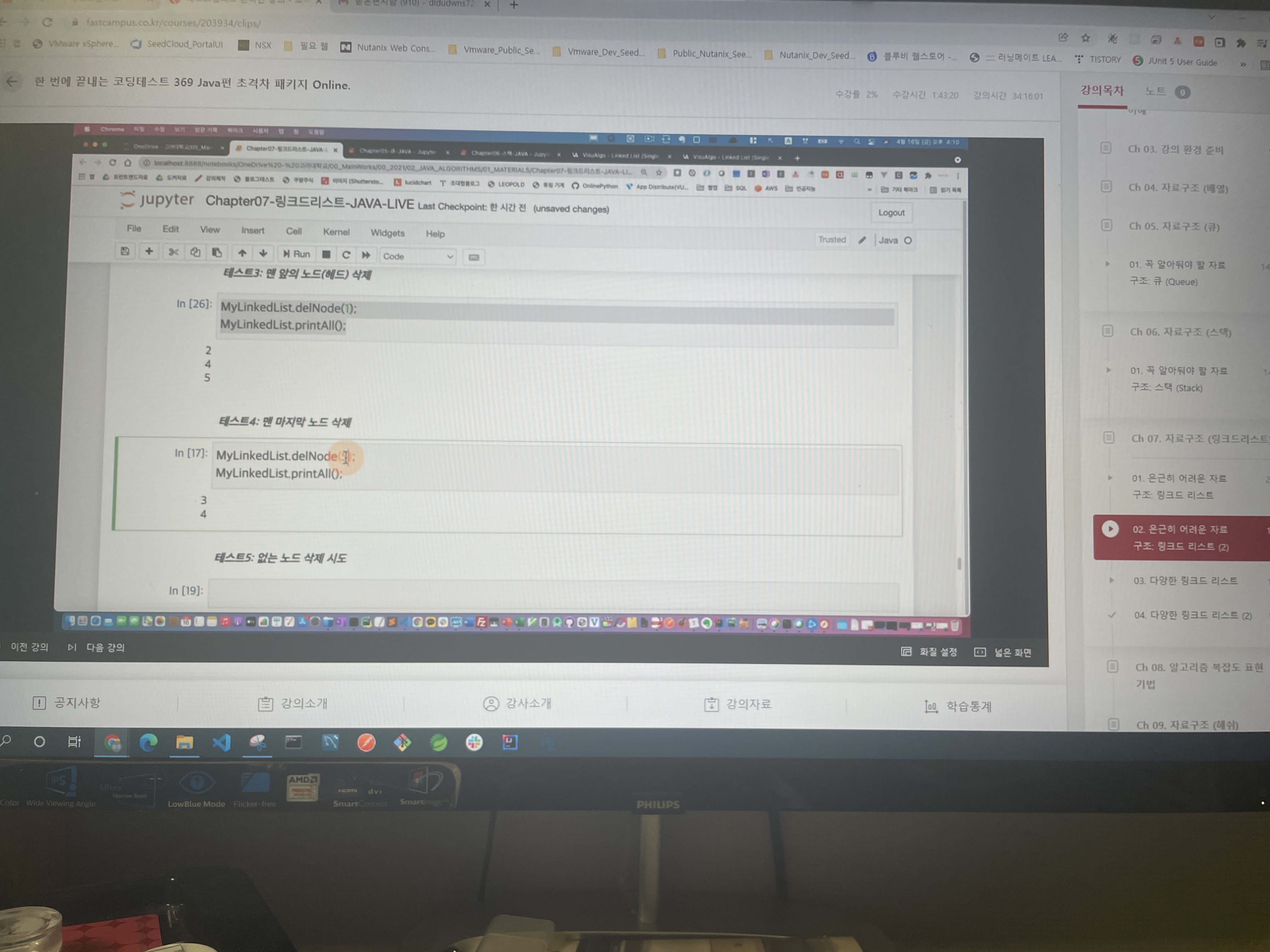 • 데이터의 중간노드 삭제