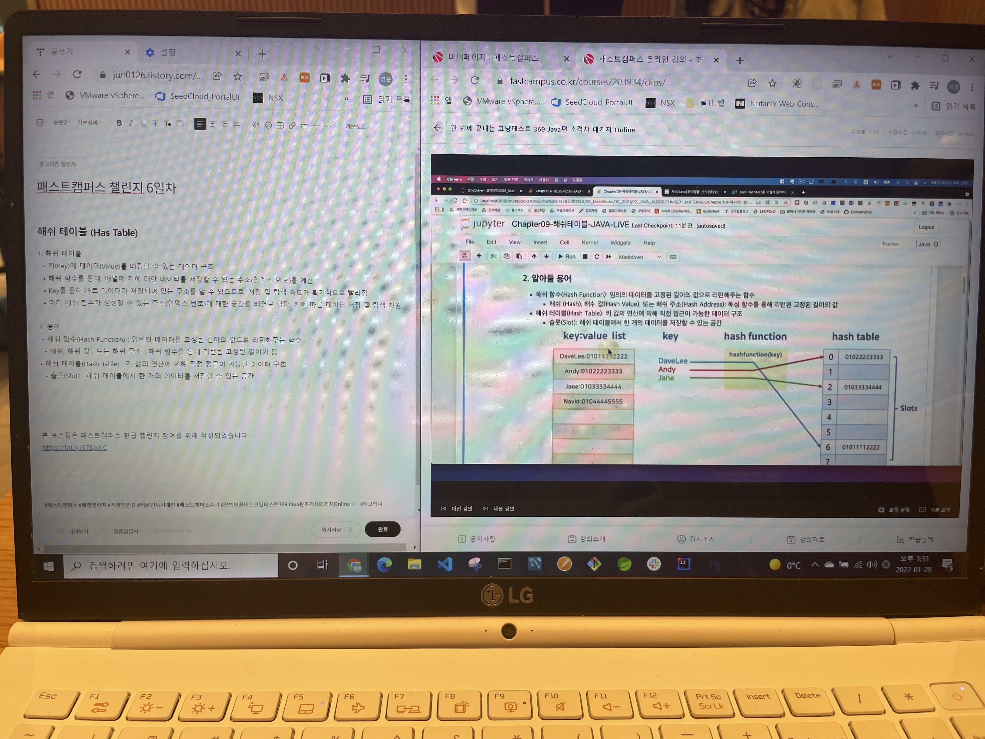 해쉬 테이블 개념은 이해가 가나 코드로 작성할때 하나하나 이해하면서 작성해야 할 필요가 있을듯 하다