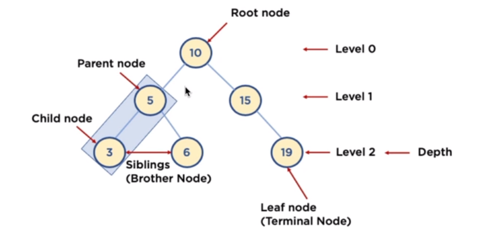 • Node : 트리에서 데이터를 저장하는 기본 요소 (데이터와 다른 연결된 노드에 대한 Branch 정보 포함)