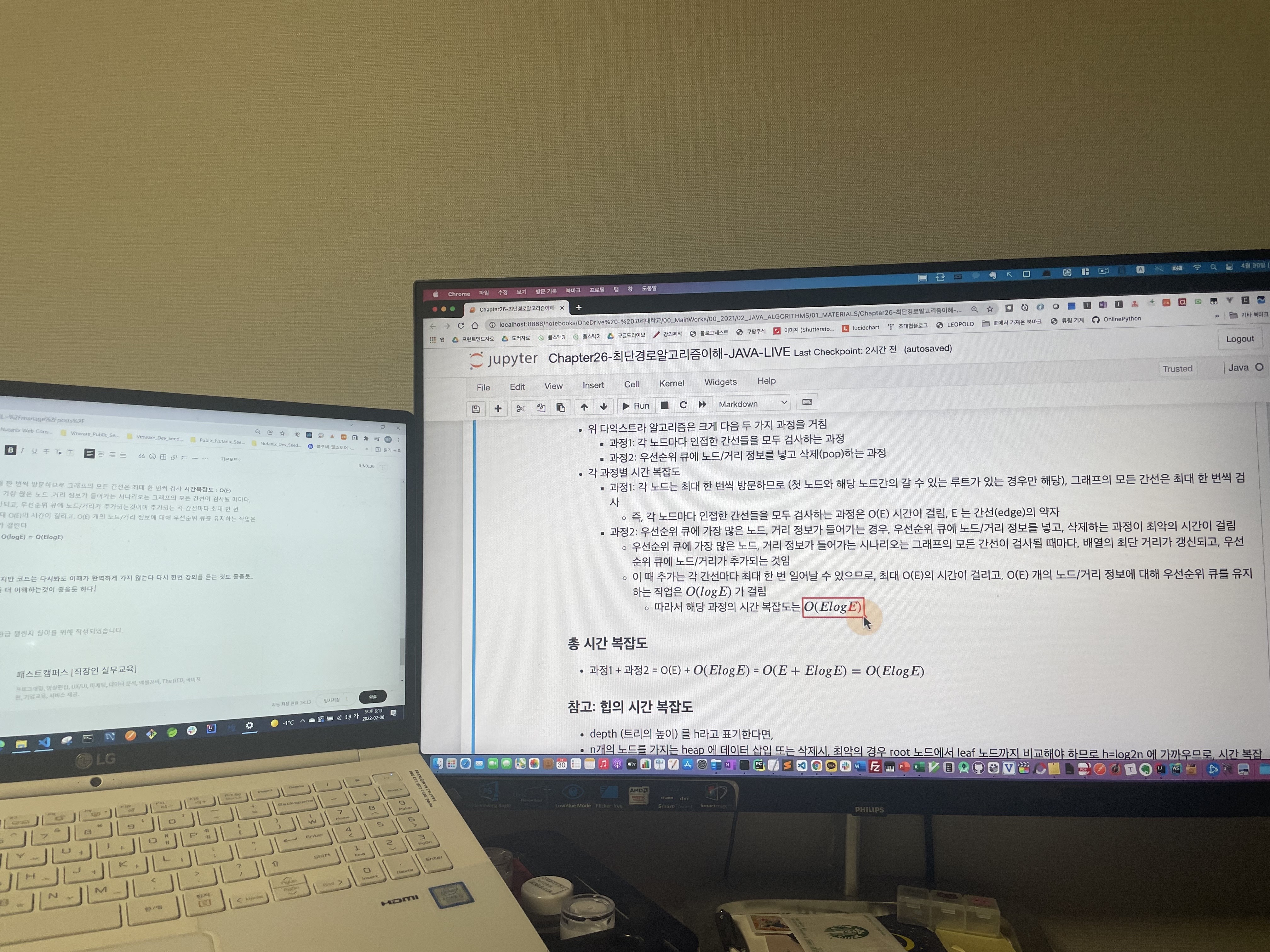 일어날 수 있으므로, 최대 O(E)의 시간이 걸리고, O(E) 개의 노드/거리 정보에 대해 우선순위 큐를 유지하는 작업은