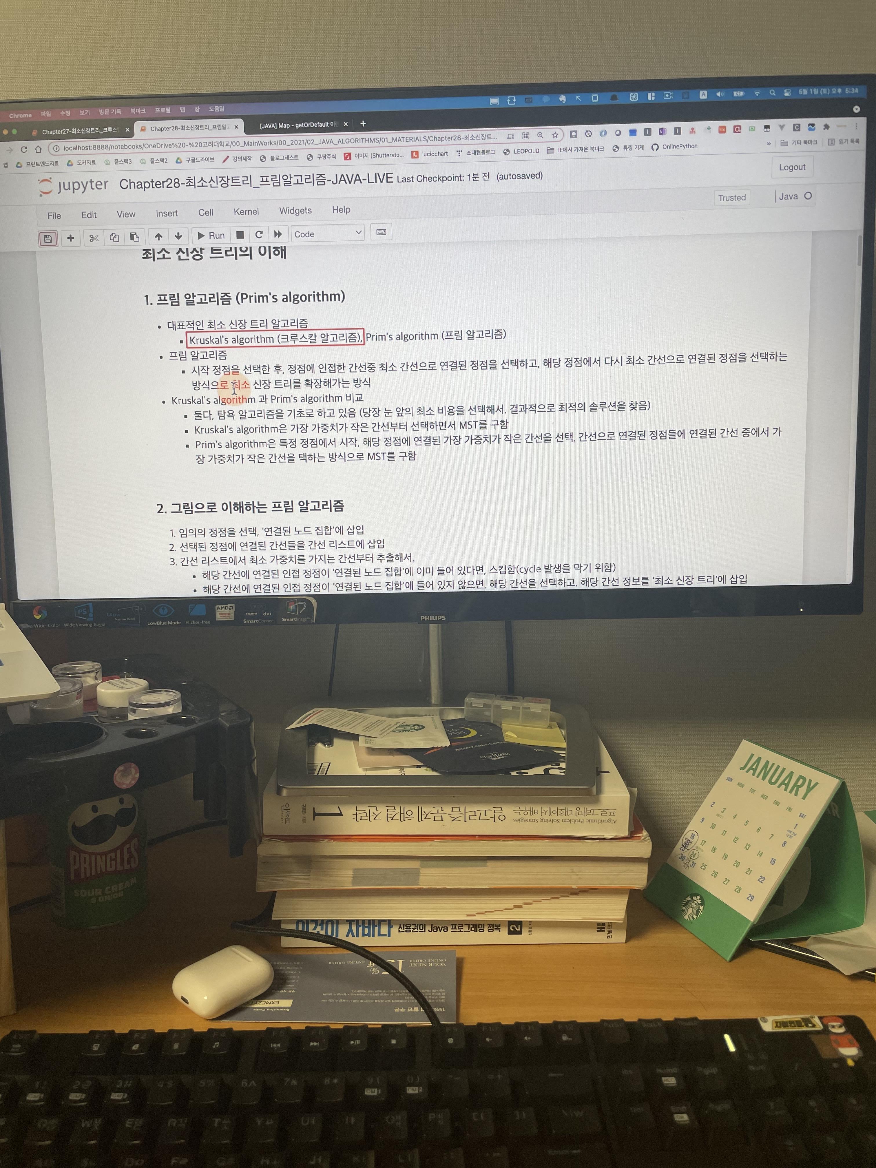 - 해당 간선에 연결된 인접 정점이 '연결된 노드 집합'에 이미 들어 있다면, 넘어간다 (사이클 방지)